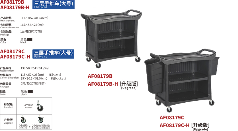 白云清潔AF08179B 三層手推車